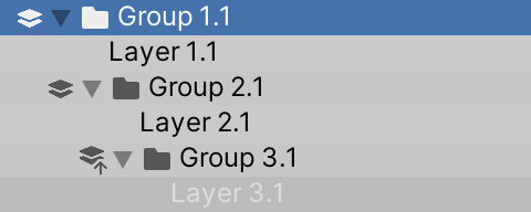 All layers in the sub-groups are grayed out when the parent Group 1 is set to Collapse.