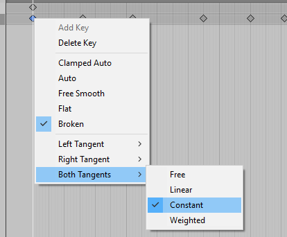 When animating by changing the **Category** and **Label** value of the Sprite Resolver in the Animation window, it is important to change the keyframe’s tangent in the Animation window to __Constant__.