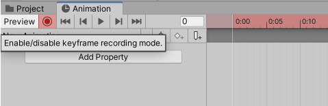 5. Enable [keyframe recording](https://docs.unity3d.com/Manual/animeditor-AnimatingAGameObject.html) in the Animation Window.