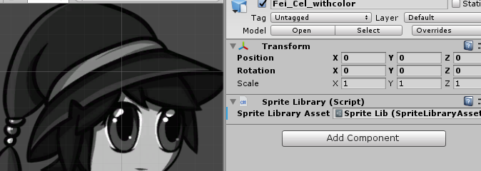 The color Sprite Library Asset. 6. With the Inspector window the color Prefab remaining open, go to the Asset window and expand the grayscale Prefab. Find the grayscale Prefab __Sprite Library Asset__ and drag it to the color Prefab‘s __Sprite Library Asset__ box, which replaces the color Prefab’s original Sprite Library Asset. 7. The Sprites of the color Prefab should have switched to their grayscale counterparts of the grayscale Sprite Library Asset. ![](images/image_18.png)