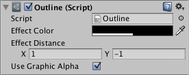 The Outline component adds a simple outline effect to graphic components such as Text or Image. It must be on the same GameObject as the graphic component.