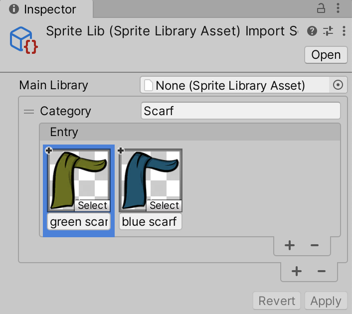 Follow the steps below to create a Sprite Library Asset, and choose which GameObjects refer to the Asset: