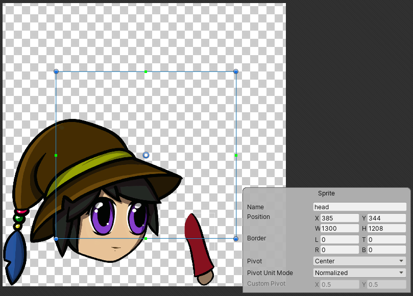 The SpriteRect of the head layer. The SpriteRect has been moved from its original position.