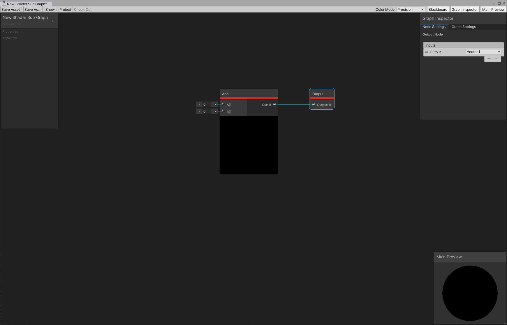 - A Sub Graph has its own Asset type. For more information, including instructions on how to make a new Sub Graph, see Sub Graph Asset.