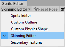 The Skinning Editor is found in the modules drop-down menu at the top left of the Sprite Editor.