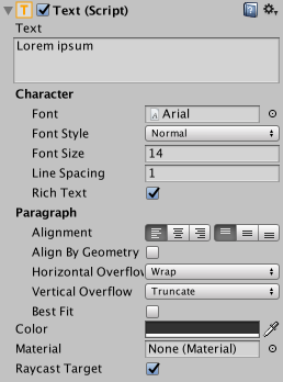 The Text component, which is also known as a Label, has a Text area for entering the text that will be displayed. It is possible to set the font, font style, font size and whether or not the text has rich text capability.
