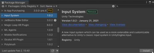 Installing and setting up the input system package
