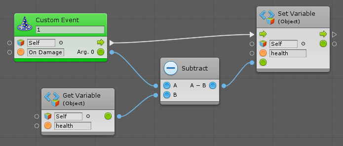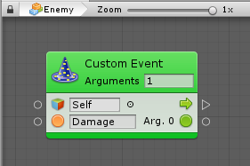 For example, to create a custom event called On Damage that gets called so the character loses health, the event should have one integer argument that indicates the amount of damage to inflict. Listen to the event by creating a Custom Event unit (under Events). Set the name to On Damage. The set the argument count, below the name, to 1.