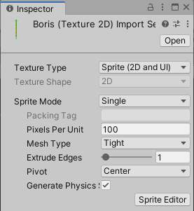 2. Select the Sprite Editor button in the Inspector window to open the actor in the Sprite Editor.