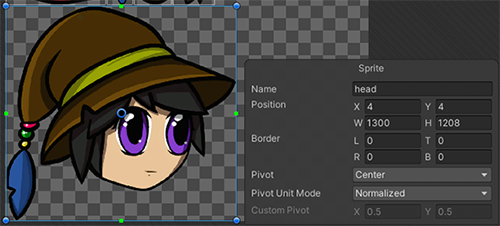 Original character prefab and its head Sprite with unmodified SpriteRect data. Character prefab with its head Sprites SpriteRect data modified.